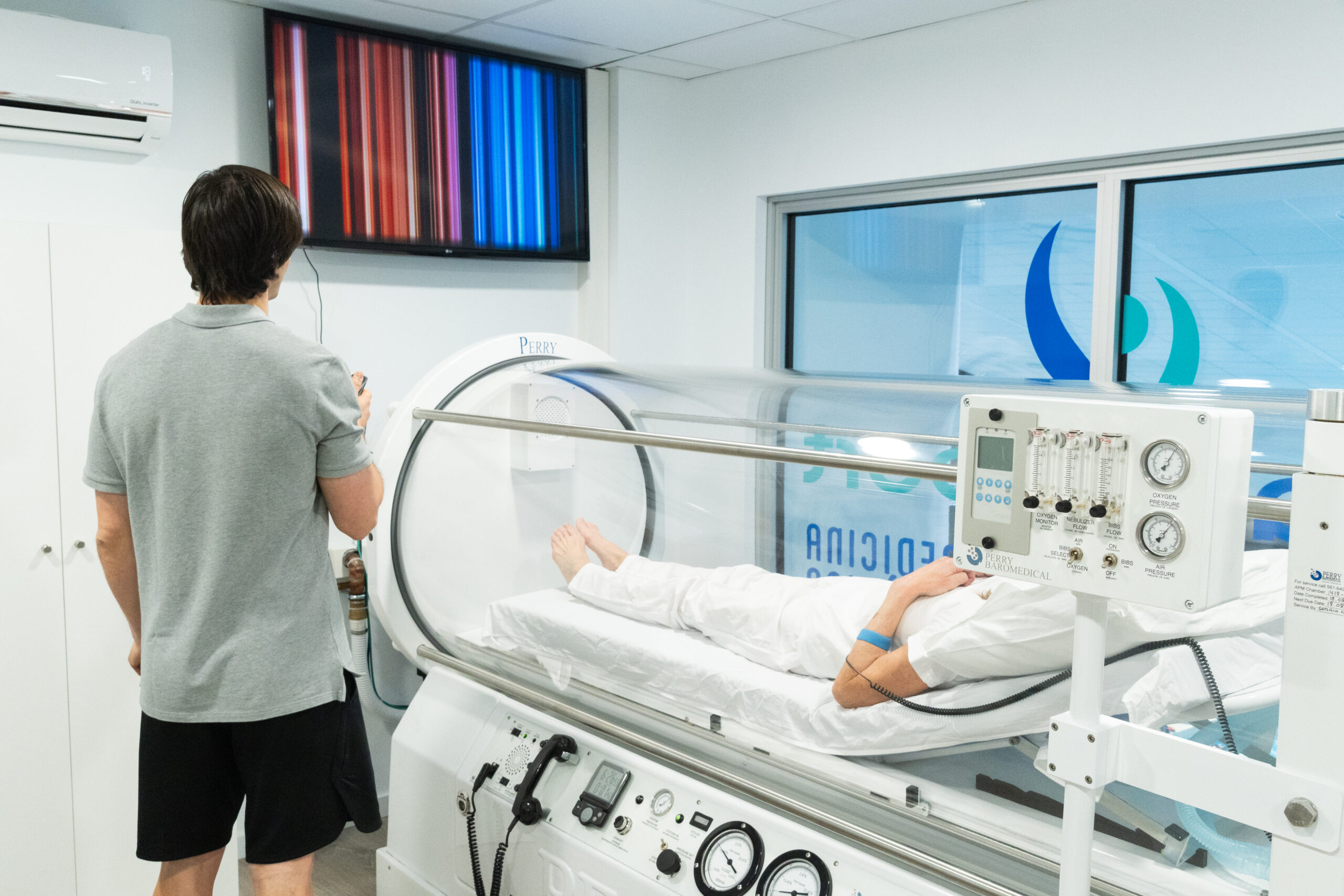 Para garantizar un tratamiento seguro y efectivo, utilizamos la cámara hiperbárica Sigma 34 de Perry Baromedical , fabricante líder en el sector. Esta cámara permite la presurización directa con oxígeno, evitando la necesidad de usar mascarillas durante la sesión y ofreciendo la máxima comodidad al paciente.